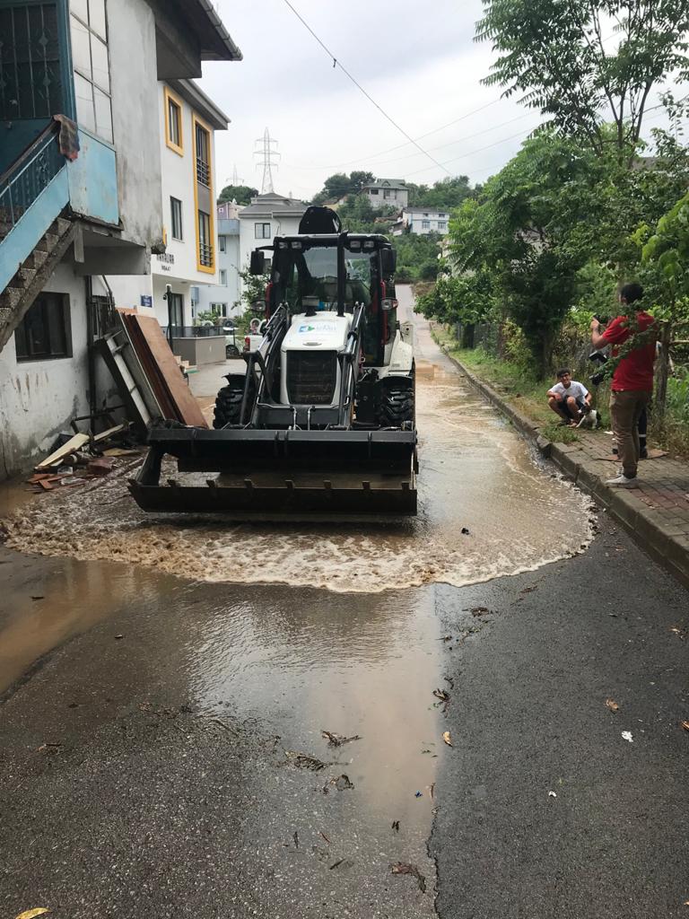 İzmit’te aniden başlayan şiddetli yağmurla birlikte hemen harekete geçen İzmit Belediyesi, tüm ekipleriyle sıkıntılı bölgelere anında müdahalede bulundu