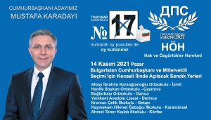 Bulgaristan’da Pazar günü gerçekleştirilecek cumhurbaşkanlığı seçimleri için Kocaeli’de yaşayan 10 bin çifte vatandaşa çağrıda bulunan İzmit Belediyesi, Türk aday Mustafa Karadayı’ya destek istedi. Hem parlamento hem de yeni cumhurbaşkanının seçileceği seçimlerde komşu ülkede Türk aday Mustafa Karadayı, Hak ve Özgürlükler Hareketi (HÖH) partisinin cumhurbaşkanı adayı olarak yarışacak.