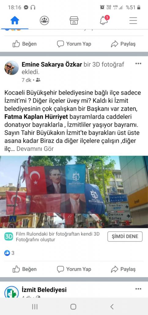 İzmit’te günler öncesinden İzmit Belediyesi tarafından asılmış bayraklar varken, tam da onlara bitişik önlerini kapatırcasına Kocaeli Büyükşehir’in bayrak asması tepki çekti. AKP İzmit Teşkilatının ayyuka çıkmış Başkan Fatma Kaplan Hürriyet korkusunun Kocaeli Büyükşehir Belediyesi’ne de bulaştığı İzmit’in pek çok noktasında konuşuluyor.