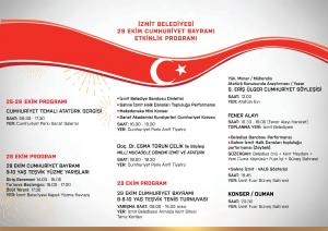 Gerçekleştirilecek programlarla tek ve ebedi Başkomutanımız Gazi Mustafa Kemal Atatürk’ün eseri Cumhuriyet’imizin 98. kuruluş yıl dönümü doyasıya kutlanacak. İzmitliler 29 Ekim Cumhuriyet Bayramı coşkusunu İzmit Fuar Güneş Sahnesi’nde saat 20.30’da ‘Duman’ konseriyle yaşayacak. ‘Senden daha güzel’, ‘Seni Kendime Sakladım’, ‘Helal Olsun’ ‘Eski Köprünün Altında’ ve çok daha fazlasını İzmitlilerle birlikte söyleyecek olan Duman müzik grubu ile bayram coşkusu had safhaya çıkacak.