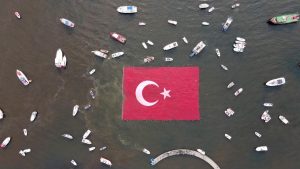 İzmit Körfezi’nde 1923 metrekarelik bayrak açıldı