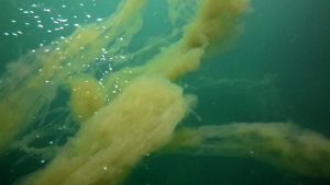 İzmit Körfezi’nde yeniden görülmeye başlanan müsilaj tedirginliğe sebep oldu. Su altı kamerası ile çekilen görüntülerde yoğun deniz salyası olduğu gözlemlendi.