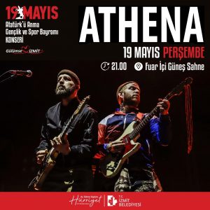 Gün boyu İzmit Belediye meydanında gerçekleşecek etkinliklerin ardından büyük bir kalabalık Fuar Alanı Güneş Sahne’ye yürüyüşe geçerek Athena ile buluşacak. Gökhan Özoğuz ve Hakan Özoğuz kardeşlerin üyesi olduğu sevilen müzik grubu Athena, ‘Yaşamak Var Ya’, ‘Kafama Göre’, ‘Ben Böyleyim’, ‘Her Şey Güzel Olacak’ ve çok daha fazlasını 19 Mayıs gecesi İzmitlilerle birlikte söyleyecek.