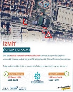 İzmit’te altyapı ve üstyapı çalışmaları yapılacak. Kocaeli Büyükşehir Belediyesi İzmit’te yapılacak çalışmalar nedeniyle duyuru yaptı.