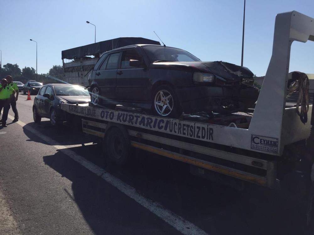 TEM Otoyolu Kocaeli geçişinde bir otomobil yoldaki lastik parçasına çarpıp savrulunca 6 araç zincirleme kazaya karıştı.