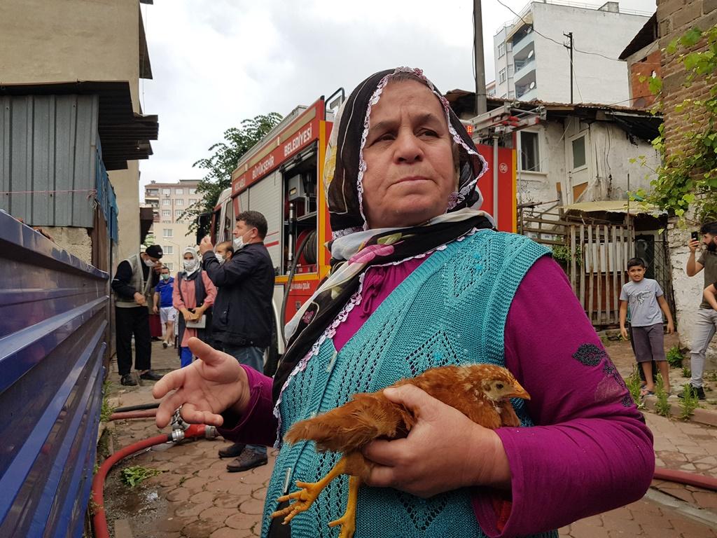 İzmit Çukurbağ Mahallesinde bulunan 2 katlı bir binada çıkan yangın kısa sürede büyüyerek yan binalara da sıçradı. Yangın, itfaiye ekipleri tarafından söndürülürken, yanan binada ikamet eden ve yangın esnasında kurtardığı tavuğunu kucağından bırakmadan izleyen yaşlı kadın, görenleri duygulandırdı.