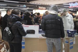 Kocaeli’nin İzmit ilçesinde yeni açılan bir elektronik mağazası kampanya başlattı. Kampanyayı açılıştan önce duyan vatandaşlar ise sabah erken saatlerde mağaza önünde kuyruk oluşturdu. Sıraya giren vatandaşlar, kapının açılmasıyla hemen indirimli ürünlere doğru yöneldi. Yoğunluk oluşturan vatandaşlardan bazıları öğrenci olan çocuğu, kimi doğum günü olan eşi, kimisi ise evi ve kendisi için alışveriş yaptı. Vatandaşlar özellikle kampanya dolayısıyla 19 TL’ye satılan 800 TL değerindeki ütüye rağbet gösterdi. Kampanyalı ürünleri almak için birbirleriyle yarışan vatandaşlar kasa önünde yığılınca çalışanlar da zaman zaman zor anlar yaşadı.