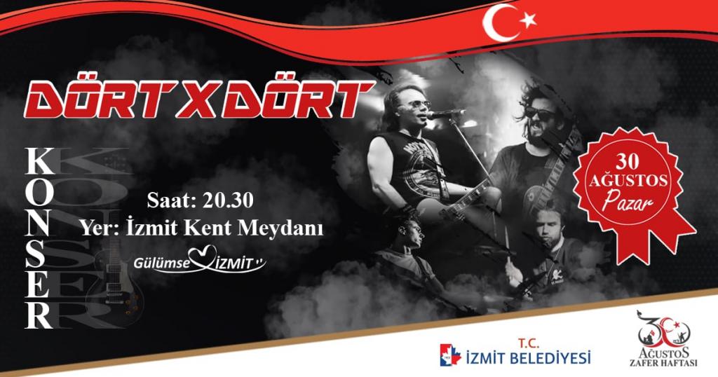 İzmit Belediyesi 30 Ağustos Zafer Bayramı etkinlikleri kapsamında gerçekleştireceği birbirinden özel etkinlikler ünlü Türk Rock grubu “Dört X Dört” konseri ile taçlanacak.