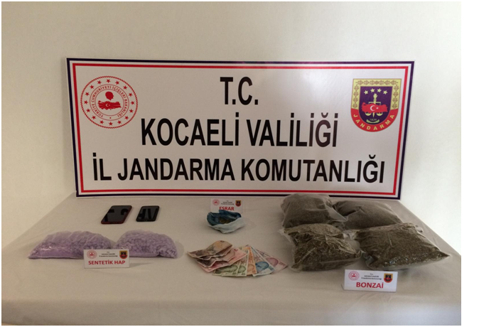 Edinilen bilgi ve iddialara göre; Kocaeli İl Jandarma Komutanlığına bağlı ekipler tarafından, uyuşturucu ile mücadele kapsamına yürütülen istihbarı çalışmalar sonucunda, bazı şahısların uyuşturucu madde ticareti yaptığı bilgisine ulaşıldı. Fiziki ve teknik takibe alınan şahısların içerisinde bulunduğu araç, Dilovası İlçesi Demirciler Mahallesinde durduruldu. Araçta yapılan ilk kontrollerde herhangi bir suç unsuruna rastlanmazken, jandarma detektör köpeği Sıtma ile yapılan kontrollerde, aracın çeşitli noktalarında zulalanmış olan 2 bin 475 extacy uyuşturucu hap, 2 kilo 2 gram bonzai ve 8 gram esrar maddesi ele geçirildi. Olayla ilgili olarak araçta bulunan 2 şüpheli gözaltına alınarak İl Jandarma Komutanlığına götürüldü.