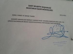 İzmit Kadıköy Mahallesi Muhtarı Mustafa Akdoğan’ın 23/11/2023 tarihinde verdiği dilekçe seçimlere 10 gün kala işleme girdi.