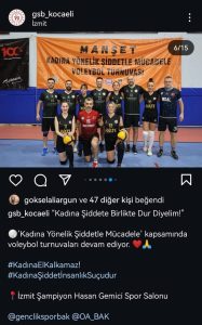 Kocaeli Gençlik ve Spor İl Müdürlüğü, 25 Kasım nedeniyle ‘Kadına Yönelik Şiddetle Mücadele Voleybol Turnuvası’ düzenliyor. ‘Kadına Şiddete Birlikte Dur Diyelim’ sloganıyla yürütülen turnuvada 25 Kasım Kadına Şiddetle Mücadele Günü’nde final etabı oynanacak. Ancak final müsabakaları öncesinde CİMER’e yapılan şikayet dikkat çekti. 25 Kasım Kadına Yönelik Mücadele Günü’ne özel düzenlenen ve mücadelede farkındalık geliştirilmesi amacı taşıyan turnuvada oynayacak kadın beden eğitimi öğretmeninin 13 Kasım’da oynanan voleybol maçında kadın A Klasman Süper Lig hakemine hakaret ettiği ve ceza aldığı ortaya çıktı.