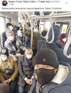 Kocaeli Gazeteciler Cemiyeti Dernek Başkanı Cemal Kaplan, sabah saatlerinde binmiş olduğu bir toplu taşıma aracından çektiği fotoğraf ile yaptığı paylaşım kısa sürede gündem oldu. Kaplan, araçtaki yoğunluğu göstererek, “Kafeteryalar ile restaurantlar boşa kapatılıyor” notunu düştü.