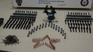 İkamette, araçta ve depoda yapılan aramalarda AK47 uzun namlulu silah ve bu silaha ait 2 adet tam dolu şarjör, yine bu silaha ait 228 adet toplamda 288 adet AK47 mermisi, 570 fişek (tabanca ve uzun namlulu silahlara ait), 31 sürgüsüz tabanca, bin 43 adet değişik çaplarda silah namlusu, 87 adet farklı silahlara ait şarjör, 34 tabanca üst sürgüsü, çok miktarda muhtelif tabanca parçaları, tabanca ve uzun namlulu silahlara ait birçok aksesuar malzemesi (Dürbün, el kundağı, dipçik), silah imalatında ve namlu değişiminde kullanılan birçok torna ve montaj aletleri ele geçirildi. Öte yandan evde yapılan aramda 27.5 gram metanfetamin ve 3 pasaportun da ele geçirildiği kaydedildi.