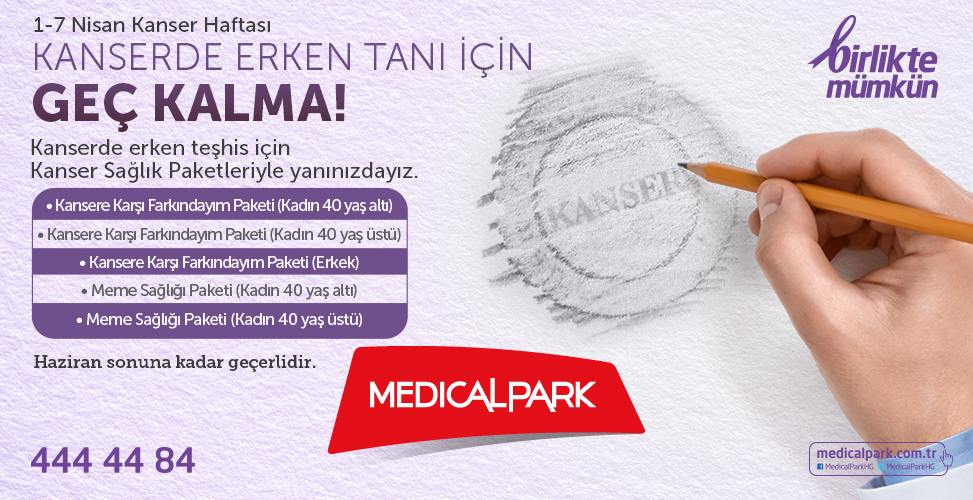 Medical Park Hastaneleri’nin kanserin erken tanısına kadar Haziran sonuna kadar sunduğu paketler hakkında detaylı bilgi almak için www.medicalpark.com.tr/ adresinden formu doldurabilirsiniz.