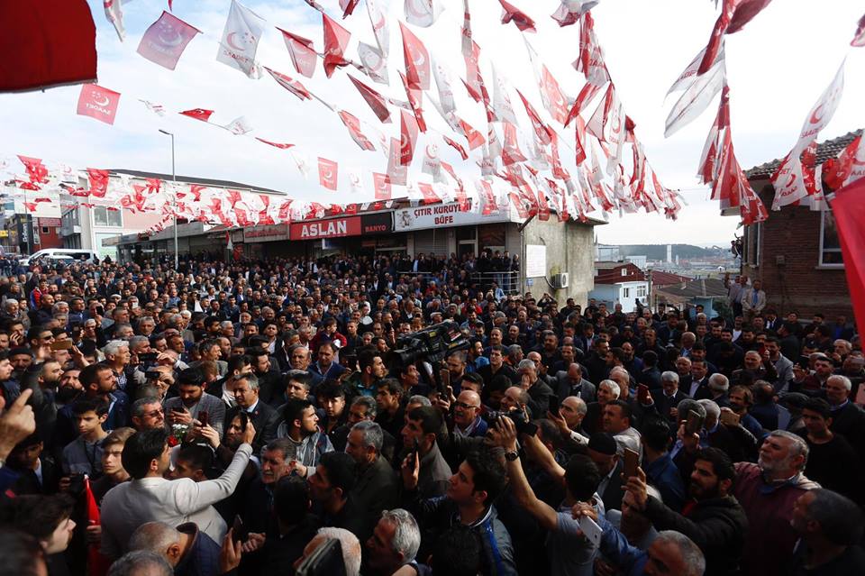Dilovası’ndaki adayları Ercan Dalkılıç’ın seçimi kazandığına vurgu yapan Karamollaoğlu, “Bu coşkulu kalabalık, ortaya koyduğunuz inanç, Saadet Partisi’nin Dilovası’ndaki zaferini muştuluyor. Allah’ın izni ile adayımız Ercan Dalkılıç’ı seçimdeki zaferinin ardından tebrik için geleceğiz” diye konuştu. Karamollaoğlu son olarak partisinin Dilovası’ndaki meclis üyesi adayı olan Turan Tekgül’ün gözaltına alınıp sonrasında serbest bırakılmasını sert sözlerle eleştirdi ve, “Saadet Partisi’nin iktidar yürüyüşünden korkuyorlar” diye konuştu.