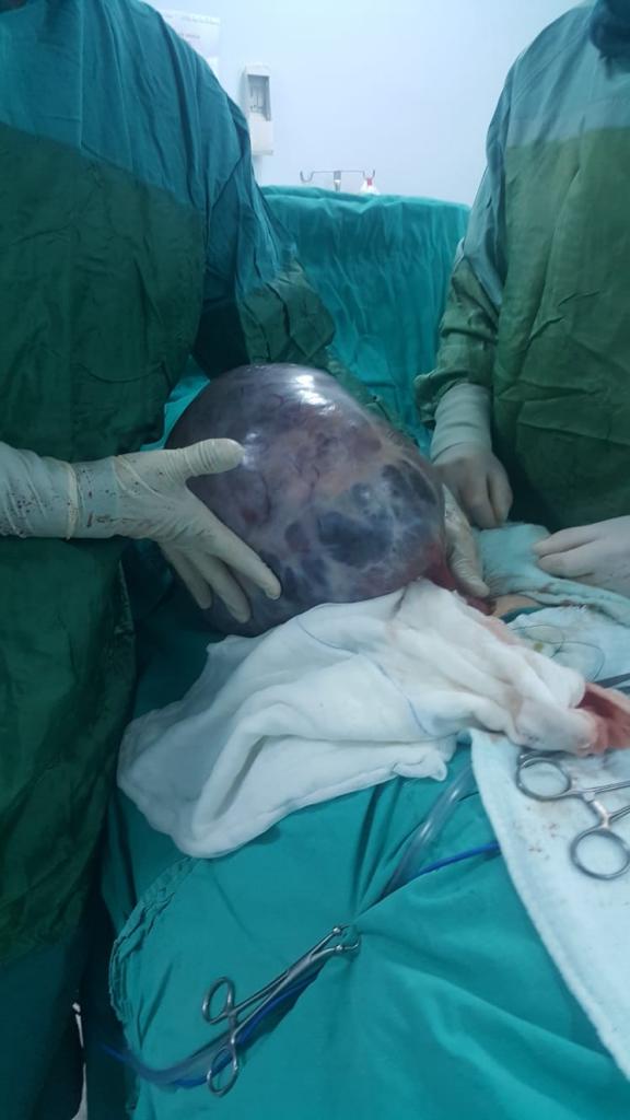 Kistin içerisinden yaklaşık 6 litre su boşaltıldığını söyleyen Kabalak “Kistin kökeni olarak bağırsak arka duvarı zarı ve yumurtalık gözükmekteydi. Çıkarılan parçayı incelemek için patoloji laboratuvarına gönderdik. Bundan sonraki tedavi sürecini patoloji neticesine göre değerlendireceğiz. Bu büyüklükte kitlelerin görülmesi çok nadir oluyor. Doktora başvurulduğunda da hastalar genellikle ileri merkezlere yönlendirilir. Ekip arkadaşlarımızla birlikte bu tür operasyonları merkezimizde başarıyla gerçekleştirebiliyoruz. Bizlere bu imkanı sunan İl Sağlık Müdürlüğü ile hastane yönetimimize ve ekip arkadaşlarıma teşekkürlerimi sunuyorum” dedi.