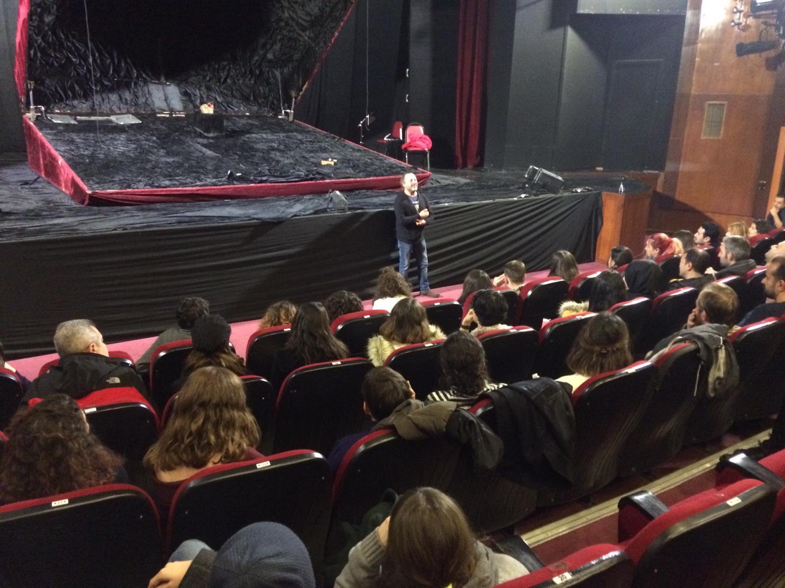 Kocaelili seyircilerin katılımıyla gerçekleşen ‘’Kulis Saati’’ adlı söyleşinin konuğu, Hamlet oyununun başrol oyuncusu Bülent Emin Yarar oldu.