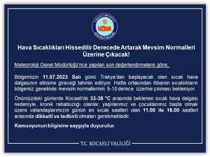 Kocaeli Valisi Seddar Yavuz Twitter hesabından yaptığı paylaşımla vatandaşları uyardı.