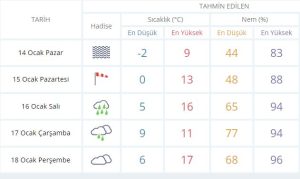 Meteoroloji Genel Müdürlüğü’nün verilerine göre hava sıcaklığı yarın -2’ye kadar düşecek. Yeni haftada ise sıcaklıkların artması ancak yağışların etkili olması bekleniyor.