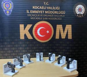 Kocaeli İl Emniyet Müdürlüğü Kaçakçılık ve Organize Suçlarla Mücadele Şubesine bağlı ekipler, bazı kişilerin silah kaçakçılığı yaptığı yönündeki duyumları üzerine harekete geçerek, 2 kişiyi takibe aldı. Takibe alınan 2 şüphelinin içerisinde bulunduğu araç, Körfez İlçesi Yarımca mevkiinde durduruldu. Araçta yapılan aramalarda 7 adet ruhsatsız tabanca ele geçirildi. Olayla ilgili gözaltına alınan ve adli mercilere sevk edilen 2 şüpheli is tutuklanarak cezaevine gönderildi.