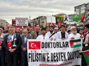 Kocaeli’de, İsrail’in Gazze Şeridi’ne uyguladığı ablukayı kırmayı ve bölgeye insani yardım ulaştırmayı amaçlayan Küresel Sumud Filosu’na düzenlenen saldırılarını kınamak için yürüyüş düzenlendi. Merkez Bankası önünden protokol üyeleri ve 7’den 70’e yüzlerce kişi ellerinde Türk ve Filistin bayraklarıyla Kent Meydanı’na kadar yürüdü. Yürüyüş boyunca tekbirler getiren vatandaşlar, İsrail’i sloganlar atarak protesto etti. Kent Meydanı’nda son bulan yürüyüşün ardından saldırılarda katledilen Filistinliler için Kur’an-ı Kerim okundu ve dualar edildi.
