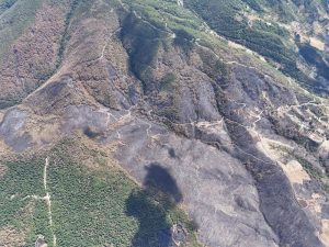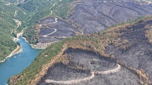 Yangın sonrası bölgede dron ile çekilen görüntüler, felaketin boyutunu gözler önüne serdi. Havadan kayda alınan görüntülerde, bir tarafta yeşilin, diğer tarafta siyahın tonlarının olduğu görüldü.
