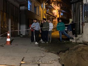 Yolda açılmalar meydana geldiğini söyleyen İbrahim Altunay, “Evde oturuyordum, saat 18.00 sıralarında bahçedeydim. Bir gürültü koptu, zanmettim ki araçlar kaza yaptı. Bir de baktım ki burası kopmuş. Burası satıldı, satıldıktan sonra ruhsat vermediler. Adam burayı kazdı bıraktı böyle, ev yapmadı. Deprem gibi gürültü oldu, millet sokağa döküldü” diye konuştu.
