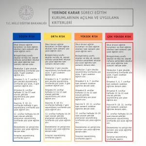 Kocaeli turuncu renkle yüksek riskli iller arasında görülüyor. Cumhurbaşkanı Erdoğan’ın açıklamalarından sonra yüksek riskli illerde yüz yüze eğitimin nasıl olacağı netleşti.