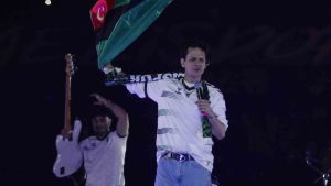 Taraftarın heyecanla beklediği isim ‘Tiryakinim’ diyerek sahaya çıktığında ise ışık şovun yanına havai fişek gösterisi eklendi. Dumanlar arasında ilk şarkısını seslendiren Bayhan, sezon boyunca taraftarın her maç öncesinde söylediği şarkıyı bu kez binlerce kişiyle birlikte söyledi. Aynı şarkıyı iki kez seslendiren ünlü isim ardından tribünlere üçlü çektirdi. Bayhan sahneyi ünlü grup Manga’nın solisti Ferman Akgül’e bıraktı. Sözlerini Kocaelispor’a da uyarlayarak seslendirdiği ‘Bir Kadın Çizeceksin’ şarkısıyla Ferman Akgül de taraftarın şampiyonluk mutluluğuna ortak oldu.