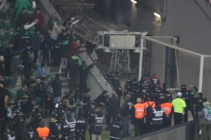 Gelirleri deprem bölgesine bağışlanmak üzere oynanan Kocaelispor – Sakaryaspor maçında iki takım taraftarları arasında gerginlik yaşandı. Sakaryaspor tribününden sahaya giren bir taraftar, Kocaelispor taraftarına doğru koşmaya başladı. Sakaryaspor atkısını Kocaeli seyircisine gösteren taraftar daha sonra güvenlik güçleri tarafından yakalandı. Daha sonra gerginlik her iki takım tribünlerine de taşmaya başladı. Atkı gösteren Sakaryasporlu’yu kovalamak için Kocaelispor taraftarları da sahaya indi. Yaşanan olaylar adeta dostluk maçının önüne geçerken güvenlik güçleri de zor anlar yaşadı. Çok sayıda taraftar gözaltına alındı.