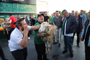 Kocaelispor’da yeni başkanlık seçimi öncesinde mevcut başkan Engin Koyun’un istifasını isteyen bazı taraftarlar, ellerinde koyun tutarak ‘Engin Koyun istifa’ diye tezahürat yaptı.