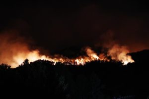 Sakarya’nın Taraklı ilçesinde öğle saatlerinde başlayan orman yangını gece saatlerinde de kontrol altına alınamadı. Bölgeyi saran alevler zifiri karanlığı aydınlatırken, yangın bölgesi havadan görüntülendi.