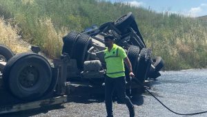 Kocaeli’nin Dilovası ilçesinde kontrolden çıkan kimyasal yüklü tır devrildi. Kazadan sürücü burnu dahi kanamadan kurtulurken, yola saçılan kimyasal madde itfaiye ekiplerince temizlendi.
