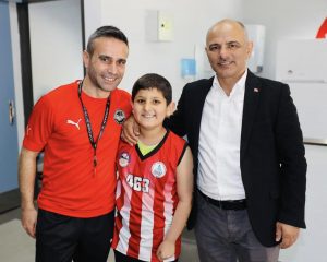 Gençlerle birlikte basketbol da oynayan Başkan Söğüt, tüm hünerlerini sergiledi. Çocuklarla oldukça keyifli zaman geçirdiğimi belirten Başkan Söğüt, “Spor akademilerimizde çocuklarımızı sporla buluşturuyor, onların gelişimine katkı sağlıyoruz. Tabi tesis altyapımızı da her geçen gün arttırıyoruz” ifadelerini kullandı. Antrenman sonrasında da Başkan Söğüt veliler ve çocuklar ile fotoğraf çektirdi.