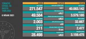 Türkiye’de son 24 saatte 271 bin 547 Kovid-19 testi yapıldı, 49 bin 584 kişinin testi pozitif çıktı, 211 kişi hayatını kaybetti. Ağır hasta 2 bin 477 oldu, 28 bin 498 kişinin Kovid-19 tedavisinin/karantinasının sona ermesiyle iyileşen sayısı 3 milyon 159 bin 475’e yükseldi. Vaka ve vefat sayısında korkutan artış sürüyor.
