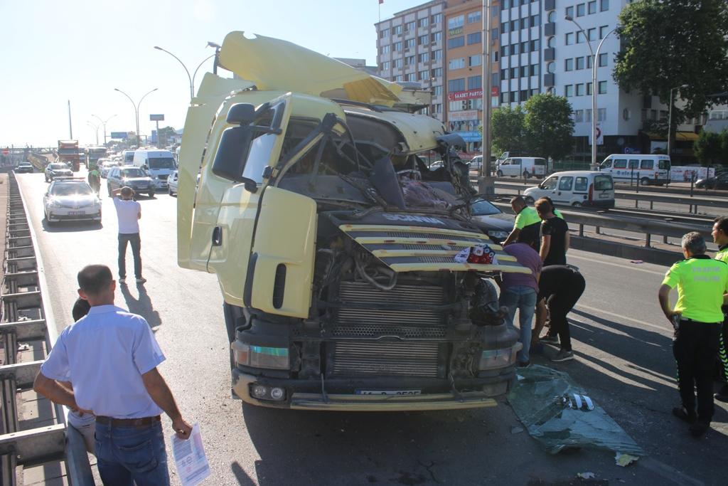İzmit D-100 Karayolundan Ankara istikametinde seyir halinde olan İlhan Turan idaresindeki 41 B 3525 plakalı hafriyat kamyonu, trafiğin aniden yavaşlaması ile birlikte önünde seyir halinde olan sürücüsü ve plakası öğrenilemeyen TIR’a arkadan çarptı. Çarpmanın etkisiyle hafriyat kamyonu yola savruldu. Çevredeki vatandaşların ihbarı üzerine olay yerine polis ve sağlık ekipleri sevk edildi. Kullanılamaz hale gelen kamyondan burnu bile kanamadan çıkan sürücü İlhan Turan, olay yerinde sağlık ekiplerince sağlık kontrolünden geçirildi. Kaza nedeniyle D-100 karayolunun Ankara istikametinde trafik yaklaşık 1 saat boyunca kontrollü olarak verildi. Kazada kullanılamaz hale gelen hafriyat kamyonu daha sonra vinçle yoldan kaldırılarak otoparka götürüldü. Polis ekipleri kazayla ilgili inceleme başlattı.