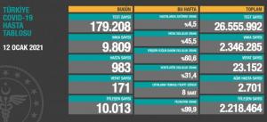 Sağlık Bakanlığı, korona virüs salgınına ilişkin son rakamları açıkladı. Bakanlığın açıkladığı verilere göre 171 kişi hayatını kaybederken, 9 bin 809 kişinin virüs testi pozitif çıktı.
