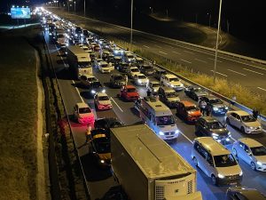 Kuzey Marmara Otoyolu’nun Kocaeli Dilovası geçişinde 2 otomobilin çarpışması neticesinde 2’si çocuk 5 kişi yaralandı. 9 günlük bayram tatili için yola koyulan çok sayıda araç trafiğin durmasıyla kontak kapattı.