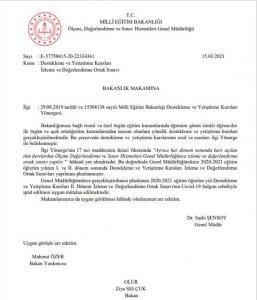 Milli Eğitim Bakanı Ziya Selçuk’un imzası ile yayımlanan yazıda şöyle denildi: