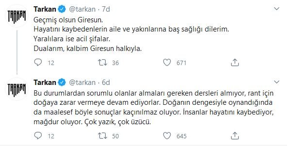 Giresun’un Dereli ilçesinde yaşanan sel felaketinde 8 vatandaş hayatını kaybetmişti. Megastar Tarkan ise sel felaketiyle ilgili iktidara sert sözlerle yüklendi.