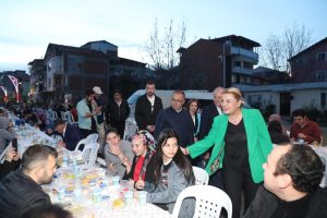 İftar sofrasında buluşmanın mutluluğunu yaşadığını söyleyen Başkan Hürriyet, “Kendi öz gücümüzle yapmış olduğumuz işlerde bir tanesi de şu an bulunduğumuz Mustafa Çalık Sokak. Yarım asırdır çözüm bekleyen, kamulaştırma sorunu olan, köhneleşmiş yapıların olduğu, insanların yaşam standartlarının zorlaştığı, asayiş problemlerinin olduğu, güvenlik bir hale gelen bir bölgeydi. Şartlar ne kadar zor olursa olsun biz burayı yenilemeyi kafamıza koyduk. Mahallemizin en can alıcı hizmetlerinden biri buydu. Kamulaştırma işlemlerine 2022’de başladık. Burada 12 bina vardı. Vatandaşlarımızın paralarını, haklarını ödedik. Kimseyi mağdur etmeden 12 binanın kamulaştırmasını tamamladık. Ardından yıkım işlemlerine başladık. Yıkımdan sonra buranın su ve elektrik altyapısını tamamladık. Ardından yine kendi ekibimiz üst yapı çalışmaları gerçekleştirdi. Atamızın ışığının aydınlattığı aydınlatma direklerimizi yerleştirdik. Otopark ihtiyacını çözdük. Çok güzel bir cadde oldu. Estetik ve konforlu bir caddeyi bölge sakinlerimizin hizmetine sunmuş bulunuyoruz” şeklinde konuştu.