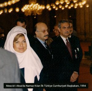 Mescid-i Aksa’da 1994 yılında ilk namaz kılan Türkiye Cumhuriyeti Başbakanı Tansu Çiller Mescid-i Aksa’ya yapılan çirkin saldırıyı şiddetle kınadı.