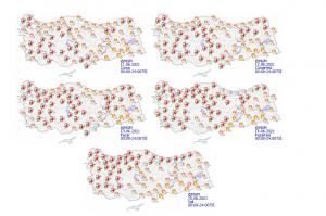 İç Ege, Akdeniz’in iç kesimleri, İç Anadolu’nun güney ve batısı, Doğu Karadeniz’in iç kesimleri ile Kırklareli, Edirne, Tekirdağ, Antalya çevreleri, İzmir ve Aydın’ın iç kesimleri, Hatay’ın kıyı kesimleri, Bolu’nun güneyi ve Sivas’ın doğusunun yerel olmak üzere sağanak ve yer yer gök gürültülü sağanaklı geçeceği tahmin ediliyor.