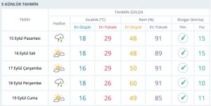 Perşembe günü ise yağışlar yeniden geri dönecek. Gök gürültülü sağanak yağışla birlikte hava sıcaklığında da düşüş bekleniyor. Cuma günü ise parçalı bulutlu hava ile birlikte nispeten serin bir gün yaşanacak.