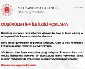 Karadeniz’de Türk hava sahasına yaklaşan insansız hava aracının tespit edilmesiyle F-16’lar devreye girdi. Milli Savunma Bakanlığı tarafından yapılan açıklamada kontrolden çıktığı belirlenen İHA’nın vurulduğu belirtilerek “Söz konusu hava izinin kontrolden çıktığı anlaşılan bir insansız hava aracı olduğu belirlenmiş; herhangi bir olumsuzluğa mahal vermemek adına, meskun mahal dışında emniyetli bir bölgede vurularak düşürülmüştür.” denildi.