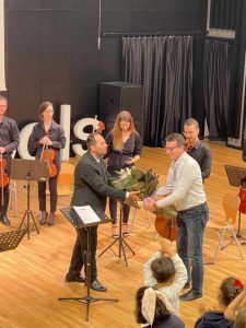 Adapazarı Özel Enka Anaokulu Müdürü İlkokul Müdürü Eser Sunter ile müdür yardımcısı Useyyid Gökcen de, şef Engin Şen’e çiçek takdim ederek; okullarında verilen bu güzel konser için teşekkür etti.