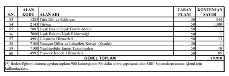 MEB tarafından yayımlanan listeye göre 60 branşta toplam 19 bin 910 öğretmen ataması gerçekleştirilecek. Ön başvurular 1-12 Haziran 2020 tarihleri arasında gerçekleştirilecek.