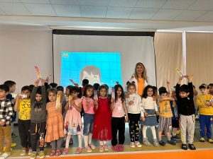 Okuma Sanatı Kulübü tarafından Fatma Seher Anaokuluna kurulan “Kübra Aydoğdu Anne Kütüphanesi’nde anaokulu öğrencilerine ve annelere yönelik AĞIZ VE DİŞ SAĞLIĞI semineri Diş Hekimi Ayhan İpek Abacı tarafından gerçekleştirildi. Okuma Sanatı Kulübü üyelerinden Selma Kahraman ve Gamze Kır Sapancı’nın da katılımıyla gerçekleştirilen keyifli söyleşi de çocukların neşeli halleri dikkat çekti. Diş Hekimi İpek Abacı’ya yoğun bir ilgi gösteren çocuklar, sahneye çıkıp hep birlikte diş fırçalama ile ilgili şarkılar söylediler. Çocuklara yönelik sempatik anlatımı ile kendisine hayran bırakan Diş Hekimi İpek Abacı çocuklara, rengârenk diş fırçaları, ailelere diş macunu hediye etti. Hediyelere çok sevinen çocuklar, Diş Hekimi İpek Abacı’ya sarılarak sevgilerini gösterdiler.