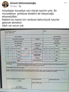 Tepkilerin ardından görev yeri değiştirilen Ahmet Mehmetalioğlu, Kocaeli’ye vaiz olarak atandı. Ahmet Mehmetalioğlu, sosyal medyadan yaptığı paylaşımda, “Arkadaşlar Kocaeli’ye vaiz olarak atandım. Bir mücadeleye girildiyse bedelini de ödeyeceğiz elhamdülillah. Rabbim bu tayine izin verdiyse daha büyük hayırlar gelecek demektir. Allah var sorun yok” ifadelerini kullandı.