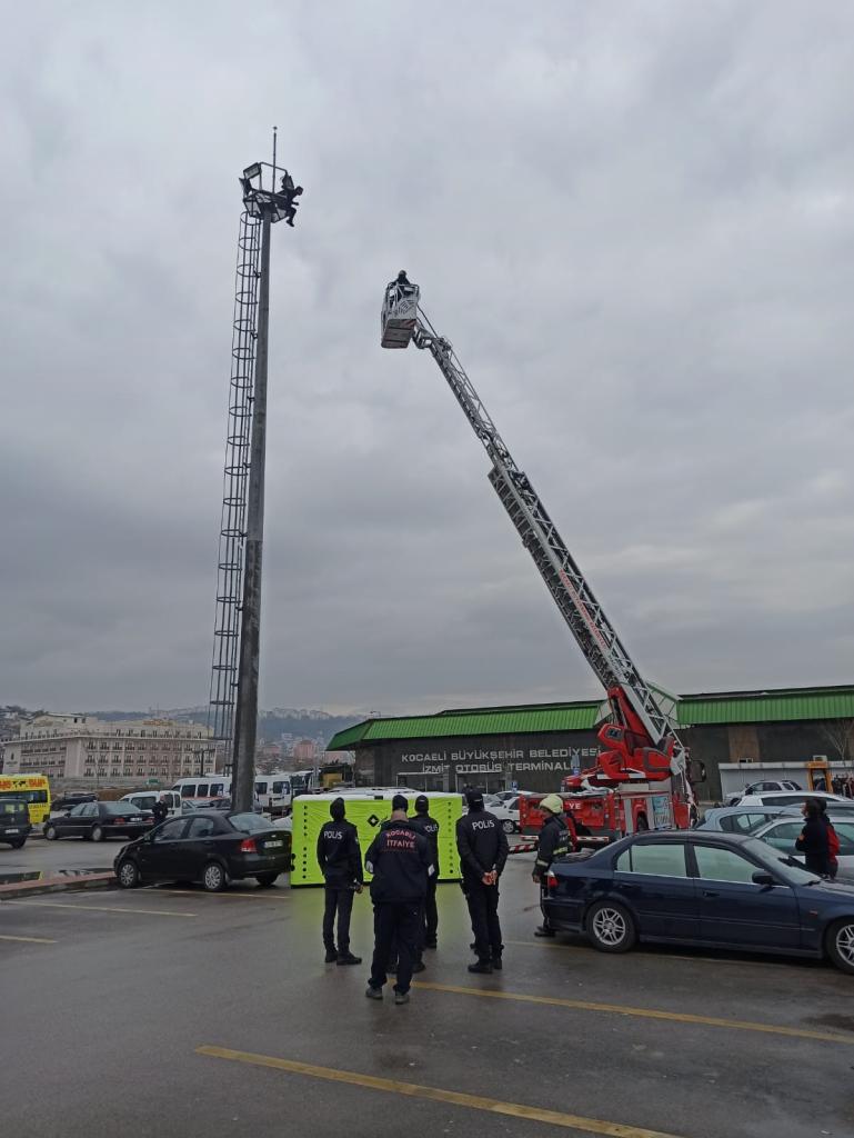 Kocaeli Büyükşehir Belediyesi İzmit otobüs terminalinde aydınlatma direğine çıkan bir şahıs intihar girişiminde bulundu. Şahısı görenler hemen polis,itfaiye ve 112 ekiplerine haber verdi. Olay yerine gelen ekipler çevrede tedbir alarak şahısı ikna görüşmelerine başladı. Şahısın daha öncede defalarca intihar girişimlerinde bulunan ışık Çağlar C. isimli genç olduğu ve yine iş, kalacak yer ve para sıkıntılarından intihara kalkıştığı öğrenildi. Şahıs bir buçuk saat sonra polislerin kendi arasında topladığı 100 lirayı alınca aşağı indi.
